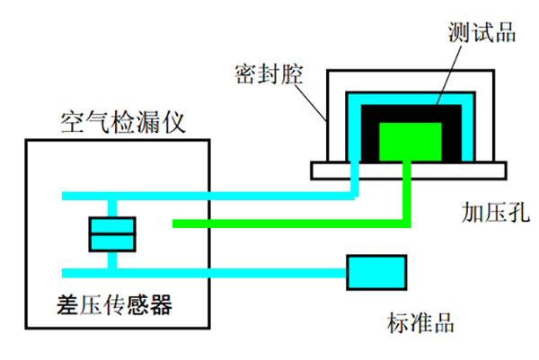 防水測試儀可以勝任對于各個部件的檢測,但是防水檢測儀必須配合工裝夾具進行使用。所謂的夾具就是根據所檢測零部件的形狀特點特定而成,其主要作用是密封及固定。將檢測部件放入工裝夾具中,形成一個密閉腔,也就是所謂檢測端;防水測試會自帶一個標準腔,叫做標準端;儀器進行檢測時,差壓傳感器根據檢測端和標準端的差壓值來判斷泄漏量。
