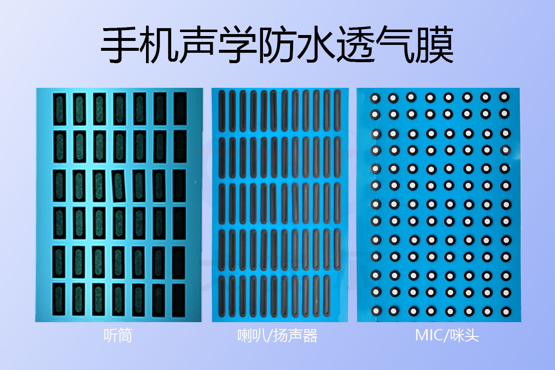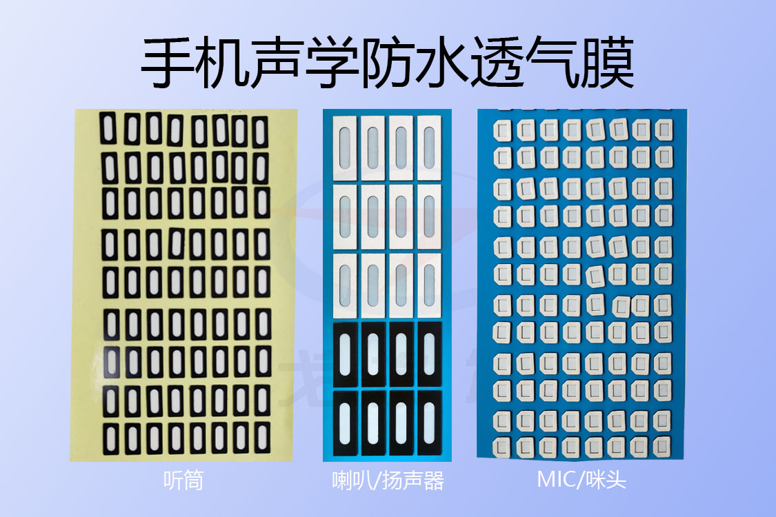 (喇叭聲學防水透氣膜、聽筒聲學防水透氣膜、咪頭聲學防水透氣膜)等方式,來做好聲學器件透聲阻水這一特殊要求。與采用硅膠、