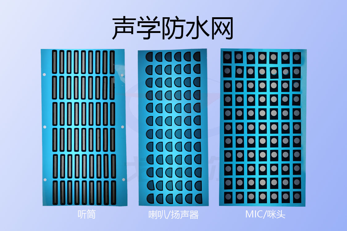 GOEL電聲器件聲學防水網是一種輔助阻尼材料,用于手機,耳機,音響和其他用于聲學過濾(防塵和防水)的電聲組件。阻擋可能從外部進入的會影響到敏感組件的水和灰塵,在手機,耳機,手環,手表,對講機等消費類電子產品的殼體相應透聲孔位置上安裝防水網,可以防止灰塵和水進入,并可以調節和改善聲音質量。