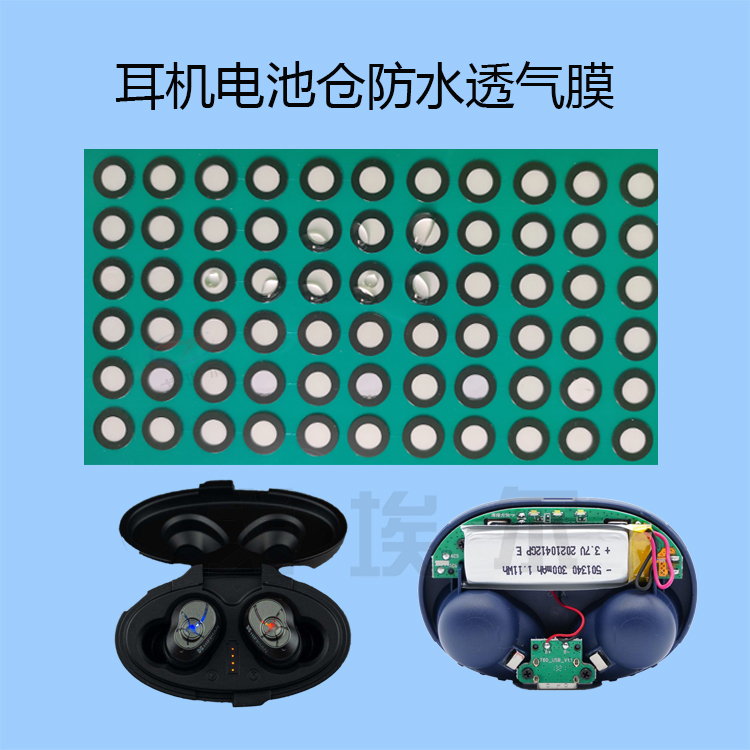耳機充電設計一般都會帶有一個電池倉,可以兼顧收納和給耳機充電的作用。下雨天一定要避免電池倉被雨水淋濕,或者洗衣服的時候,要把耳機電池倉取出來,否則進水容易短路造成損壞。所以充電倉的防水就非常重要了。現在很多廠家都在用戈埃爾科技公司的防水透氣膜來保護電池倉。
