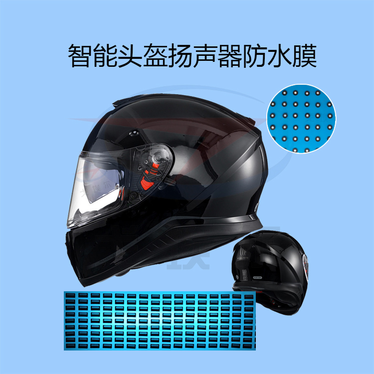 至于智能頭盔揚聲器/麥克風透聲孔一般是粘貼戈埃爾研發(fā)的防水透氣膜、防水通音膜,達到了IP67級別;可以雨水沖刷長達30分鐘。輕松應(yīng)對暴雨天氣,高濕或多塵沙的惡劣環(huán)境,這樣不僅讓騎手在騎行過程中方便通訊。而且也保護了智能頭盔不被雨水侵入而導(dǎo)致電子元件損壞。更保證了雨天騎手的生命安全。