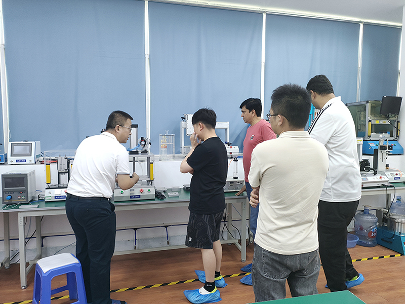 在客戶到來前,公司與印度客戶積極溝通。明確了客戶希望深入了解設(shè)備性能、應(yīng)用場景及技術(shù)參數(shù)等考察需求,并精心規(guī)劃了行程。與此同時,公司內(nèi)部緊鑼密鼓地籌備。技術(shù)人員對防水測試機和氣密性檢測儀進行多輪精細調(diào)試,確保設(shè)備以最佳狀態(tài)展示;銷售人員整理各類詳盡資料,涵蓋產(chǎn)品手冊、成功案例等,為客戶提供全面信息。