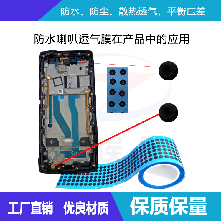 聲學防水膜原材料根據實際應用有手機咪頭防水透聲膜、對講機咪頭防水透聲膜、移動平板電腦咪頭防水透聲膜、移動媒體播放器咪頭防水透聲膜、藍牙耳機咪頭防水透聲膜、助聽器咪頭防水透聲膜、智能音箱咪頭防水透聲膜、智能穿戴咪頭防水透聲膜等防水系列電子產品壓吸水,解決霧汽問題。