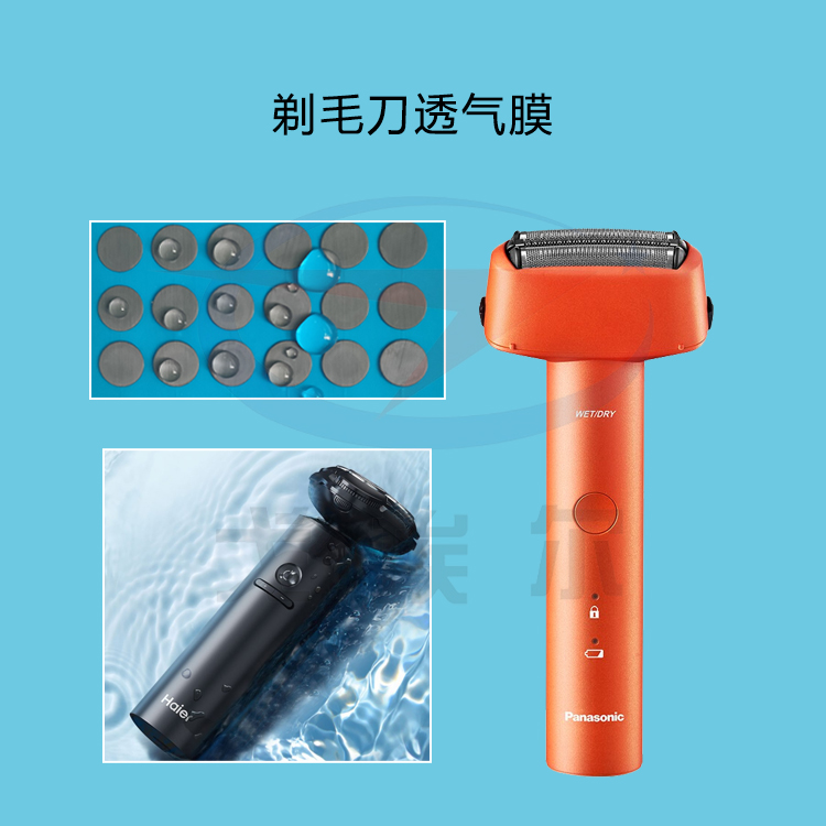 透氣膜材料通常由聚合物或陶瓷等材料制成,其微孔直徑比水分子大,但比空氣分子小。這意味著水分可以通過透氣膜,但不會通過膜進(jìn)入剃須刀內(nèi)部。同時,透氣膜的微孔結(jié)構(gòu)允許空氣通過,幫助散熱并防止灰塵和污垢積聚。